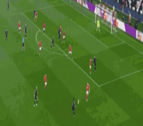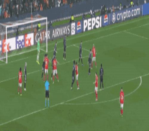 第58分钟,居莱尔冷静晃过防守后将球传到中路,本菲卡点球点附近完全漏人,姆巴佩梅开二度。