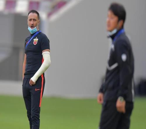 新华社照片,多哈,2020年12月7日 (体育)(37)足球——亚冠:上海上港不敌神户胜利船 12月7日,上海上港队主教练佩雷拉(左)在比赛中指挥。 当日,在卡塔尔首都多哈进行的2020赛季亚洲足球冠军联赛东亚区淘汰赛八分之一决赛中,中超上海上港队以0比2不敌日本神户胜利船队,无缘八强。 新华社发(尼库 摄)